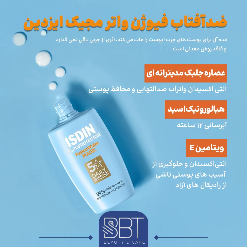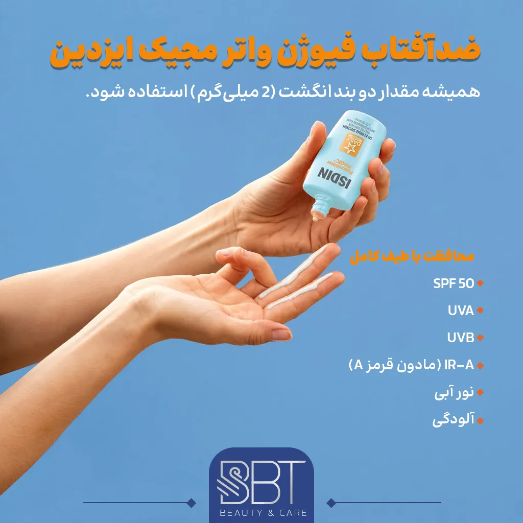 ضدآفتاب فیوژن واتر مجیک ایزدین بی‌رنگ پوست چرب