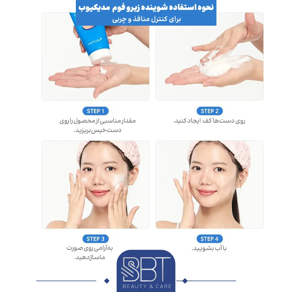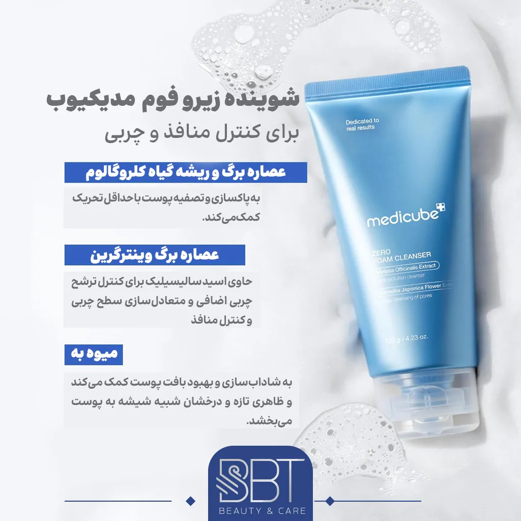فوم شوینده زیرو مدی کیوب مناسب پوست چرب و منافذ باز